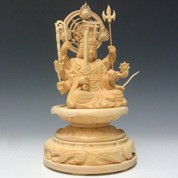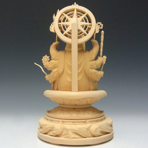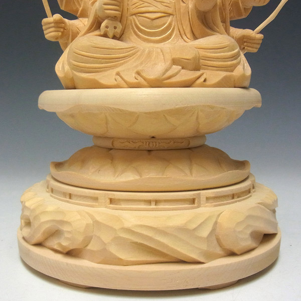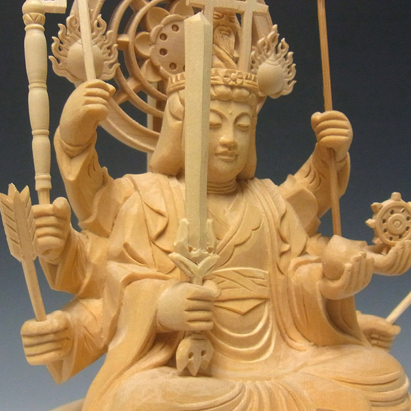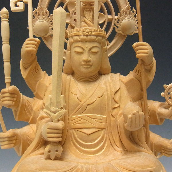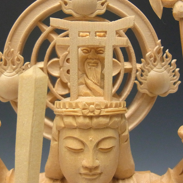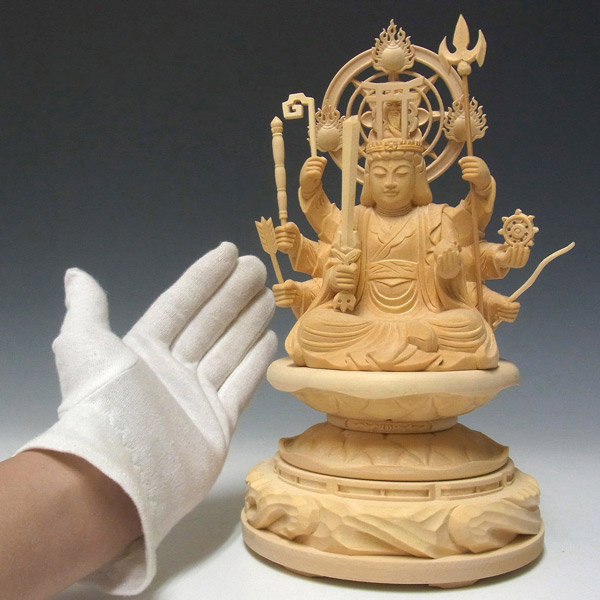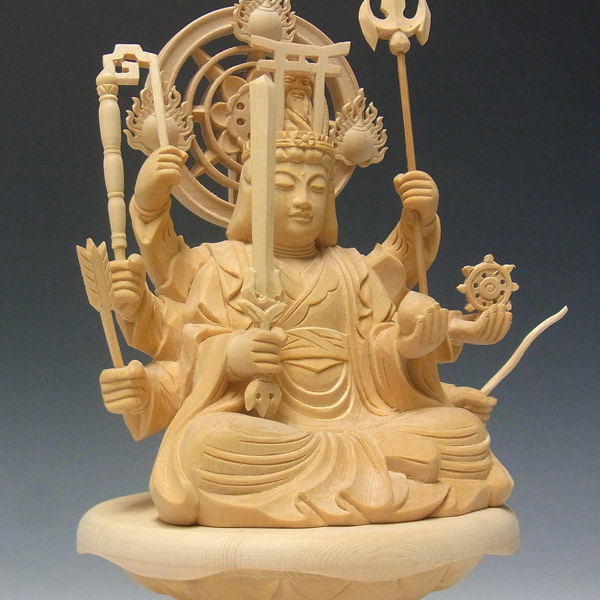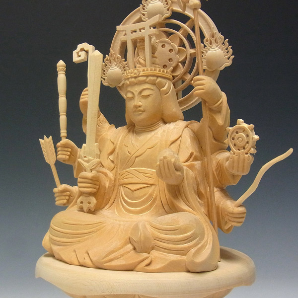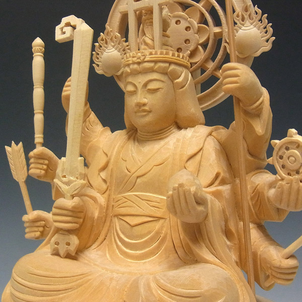 桧から手彫りで彫り上げられた八臂弁財天坐像です。