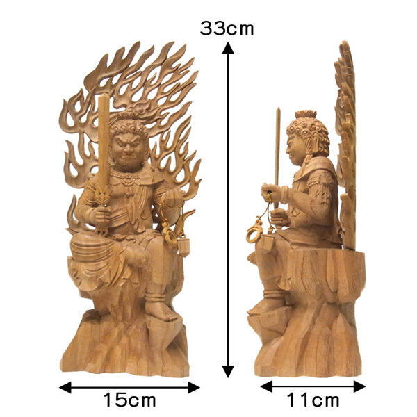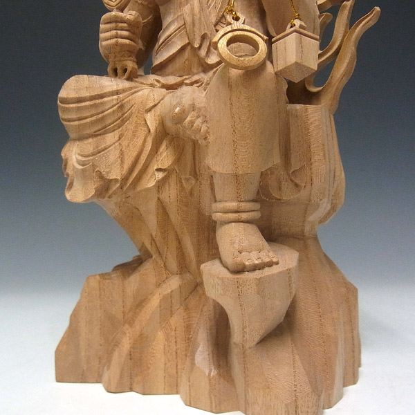 総高は33cmとやや大きめの造りで、欅の品質を損なわないよう、手彫りで丁寧に仕上げられています。上品な欅木の自然の風合いもお楽しみいただける一品です。