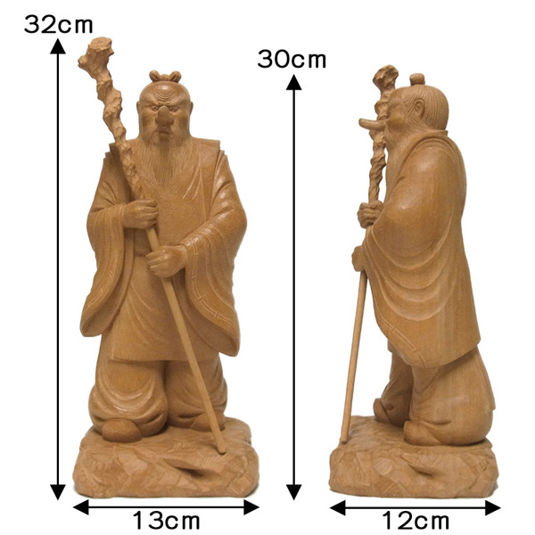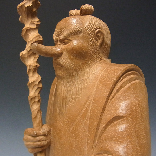 猿田彦大神(さるたひこのおおかみ)は日本神話に登場する神で元々は、天孫降臨の際に、邇邇芸命をご案内しようと、道の途中でお待ちしていた神様です。このことから、この神は道の神、道案内の神、旅人の神とされました。その神の鼻長は七咫、背長は七尺、目が八咫鏡のよう、また赤酸漿のように照り輝いていると記されており、天狗や猿の化け物のような姿であったとされています。