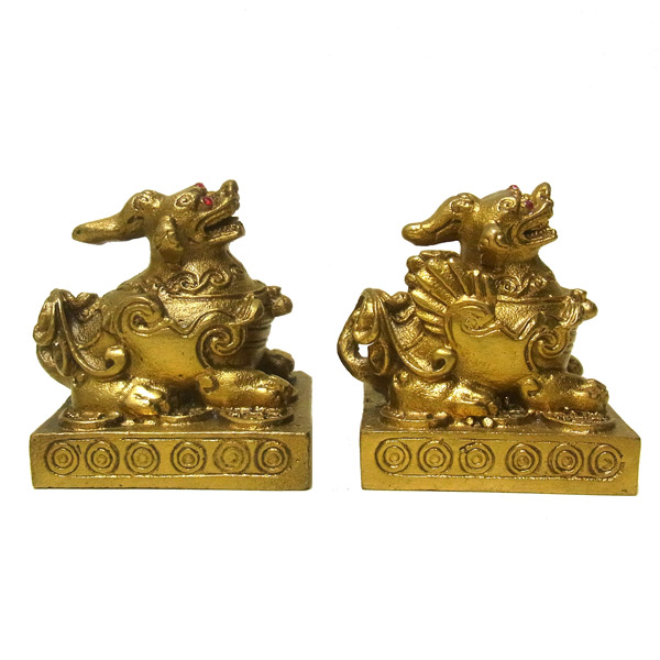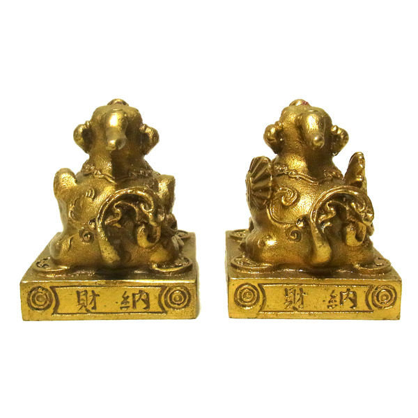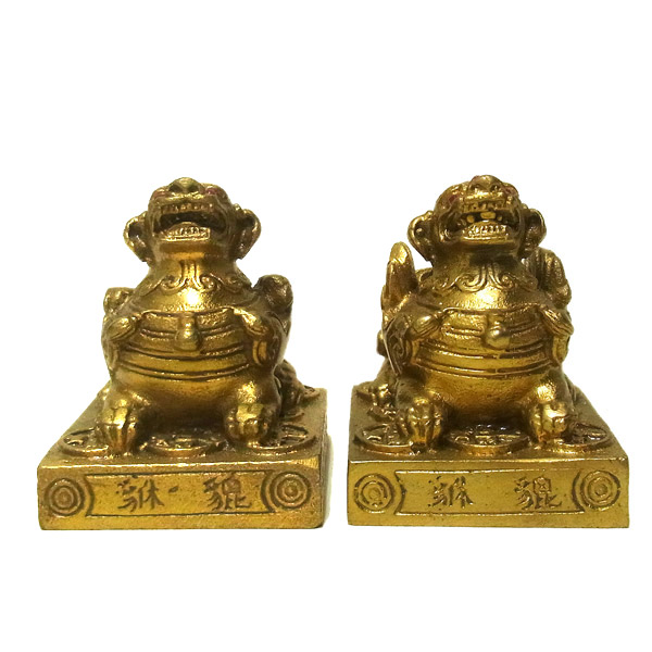 貴金属を好んで食べ物とし、それを出すお尻の穴がないことから、現在では財運・蓄財のシンボルとされています。龍亀(ロングイ)と一緒に置くと、更に良いといわれています。