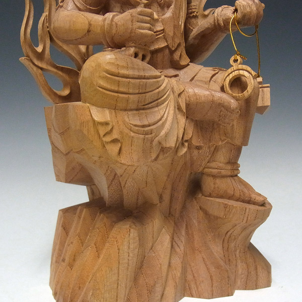 総高は33cmとやや大きめの造りで、欅の品質を損なわないよう、手彫りで丁寧に仕上げられています。上品な欅木の自然の風合いもお楽しみいただける一品です。