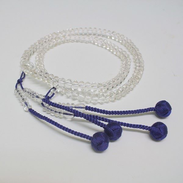 水晶のみかん珠を使用した数珠(念珠)です。主に真言宗で使用される形式の「本連数珠」です。透きとおった水晶が気品を感じさせる一品です。