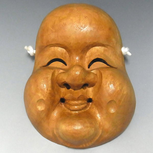 楠白木 恵比寿面 砥の粉オイル仕上げ 木彫り 壁掛け用お面
