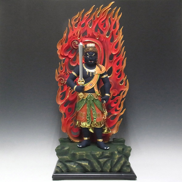 楠 彩色不動明王 立像 86cm 木彫り 仏像