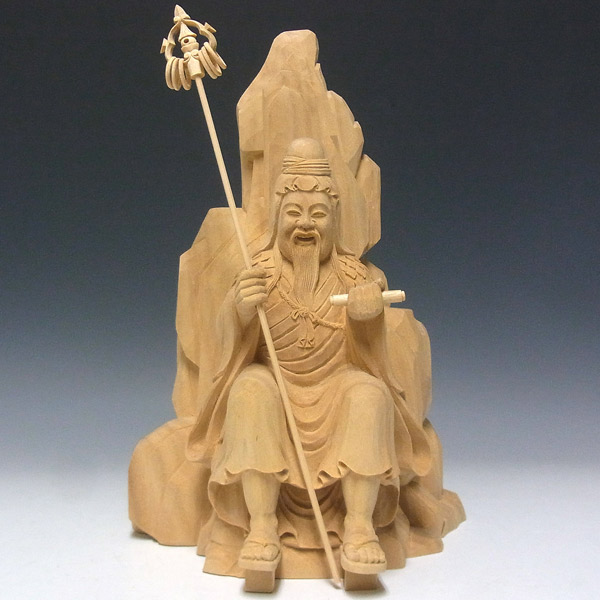 楠 彩色 役行者 母付き 68cm(錫杖を含むと80cm)