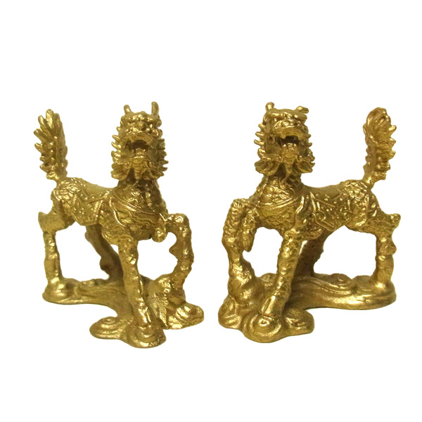 銅器 金彩首開き貔貅(ヒキュウ) セット