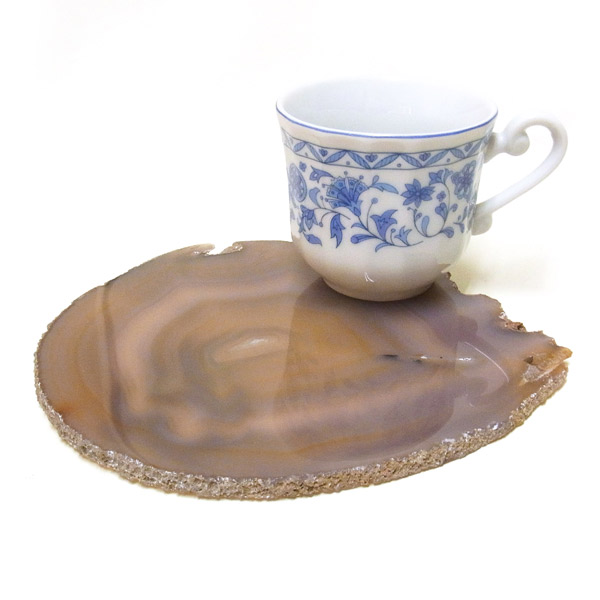 染色をしていな天然のメノウの色になります。 置物を置いたり、鉱物を置いたりのインテリアとしてや、グラスなどを置くコースターとしてもお楽しみ頂けます。