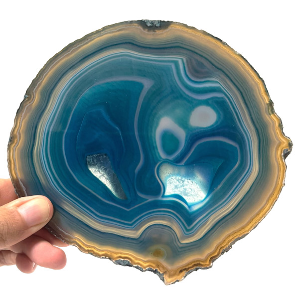 染色することにより、色の濃淡ができ、メノウの縞模様がより一層美しくなります。置物を置いたり、鉱物を置いたりのインテリアとしてや、グラスなどを置くコースターとしてもお楽しみ頂けます。