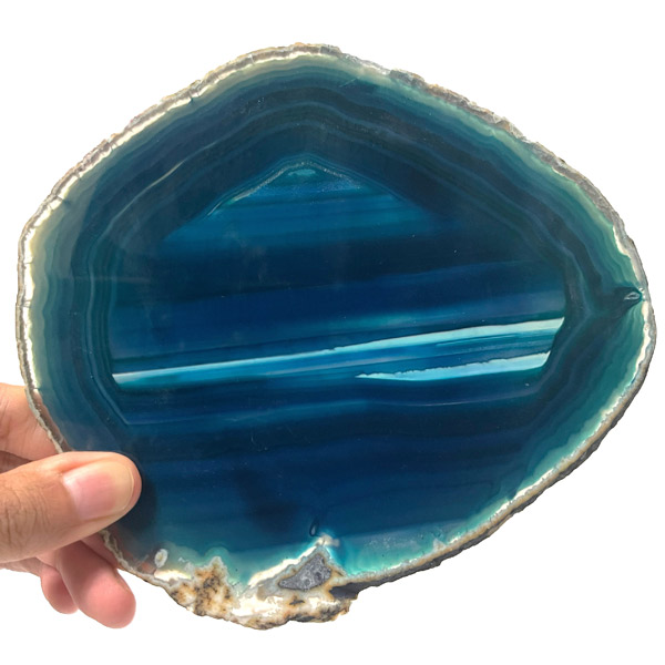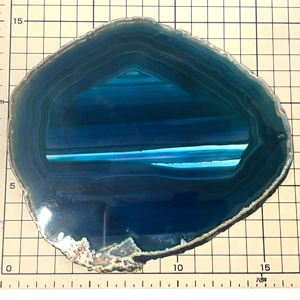 染色することにより、色の濃淡ができ、メノウの縞模様がより一層美しくなります。置物を置いたり、鉱物を置いたりのインテリアとしてや、グラスなどを置くコースターとしてもお楽しみ頂けます。