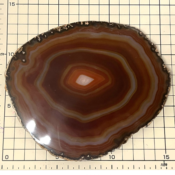 染色することにより、色の濃淡ができ、メノウの縞模様がより一層美しくなります。置物を置いたり、鉱物を置いたりのインテリアとしてや、グラスなどを置くコースターとしてもお楽しみ頂けます。