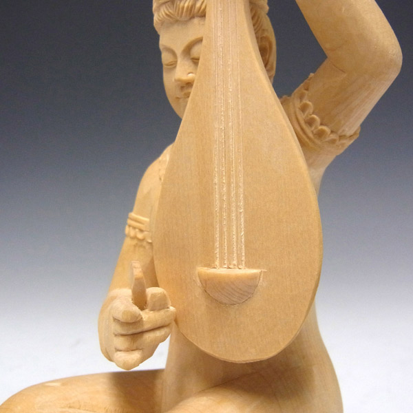 桧から彫り上げられた弁財天坐像です。女性らしいしなやかな体を見事に表現しています。