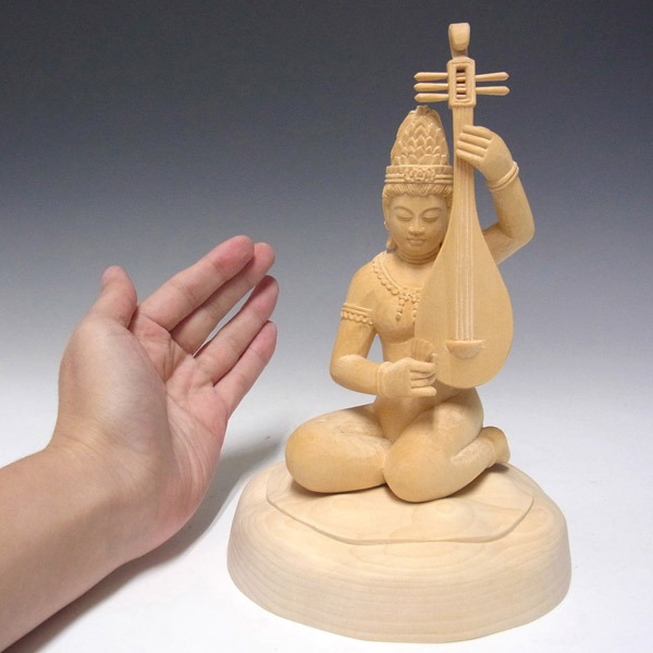 桧 弁財天(弁才天) 坐像 21cm 木彫り 仏像