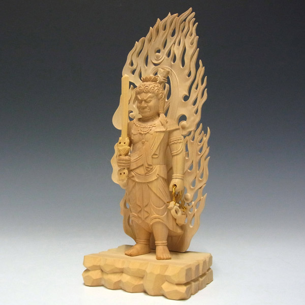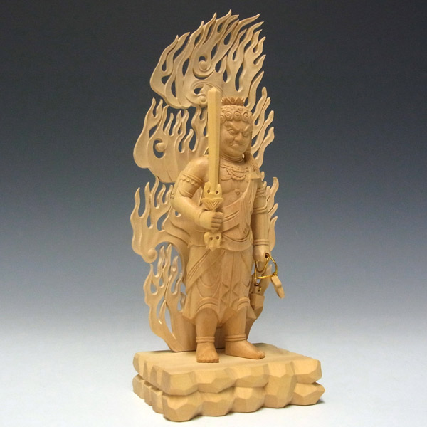 高級銘木である柘植から手彫りで彫り上げられた不動明王立像です。