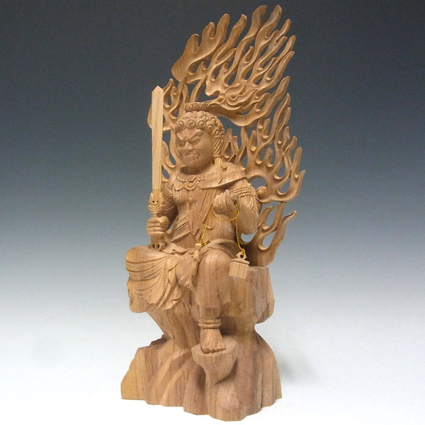 不動明王とは、仏教における明王の一尊であり、仏法の「力」の象徴ともなっている憤怒の仏です。古来より根強い信仰があり、その威厳に満ちた姿から、すべての災魔を降服するとされ、さらに苦難に立ち向かう修行者を守護するといわれています。