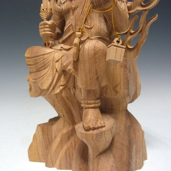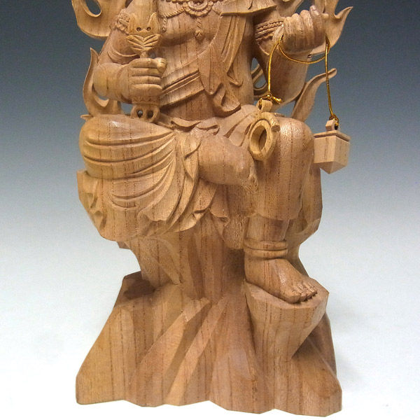 総高は33cmとやや大きめの造りで、欅の品質を損なわないよう、手彫りで丁寧に仕上げられています。上品な欅木の自然の風合いもお楽しみいただける一品です。