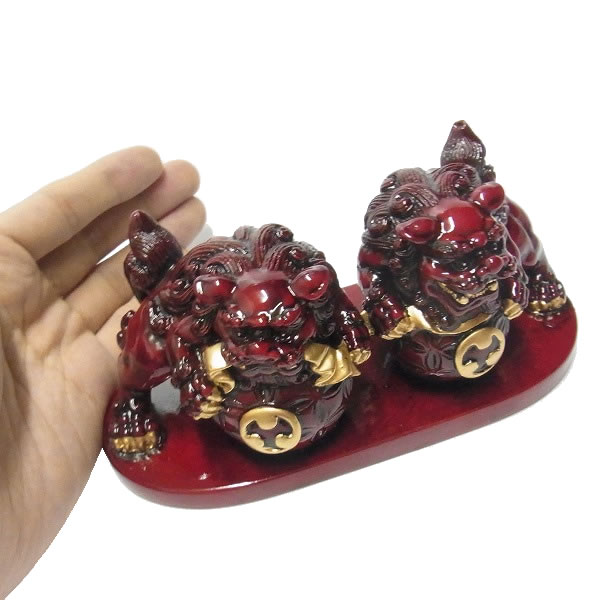 風水・開運置物 玉獅子(狛犬)ミニサイズ 台付き