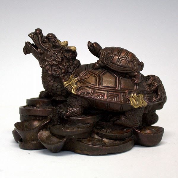 古代中国の神話上の霊獣である龍亀(ロングイ)は、風水では、龍の強い霊力と亀の保護力を持っているとされています。「正財」(労働など汗を流して得る金運)を招き、仕事上の良い運気や人脈を招くといわれ、主にビジネスや商売の場で扱われる縁起物として人気のアイテムです。