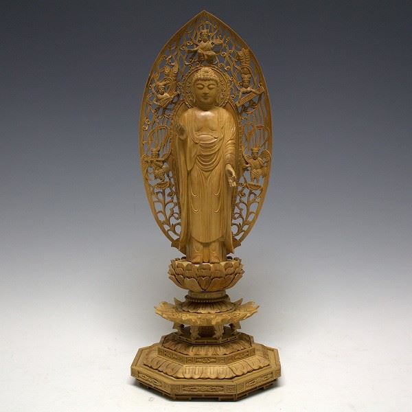 桧 阿弥陀如来 立像 26cm 木彫り 仏像